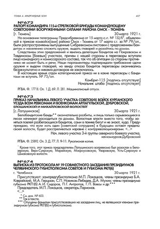 Рапорт командира 115-й стрелковой бригады командующему советскими вооруженными силами района Омск - Тюмень. [г. Тюмень]. 30 марта 1921 г. // РГВА. Ф. 17718. Оп. 1. Д. 69. Л. 281. Машинописный отпуск.