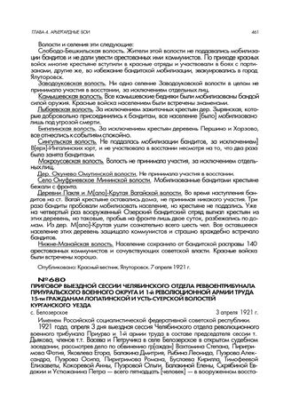 Приговор выездной сессии Челябинского отдела Реввоентрибунала Приуральского военного округа и 1-й революционной армии труда 15-ти гражданам Лопатинской и Усть-Суерской волостей Курганского уезда. с. Белозерское. 3 апреля 1921 г.