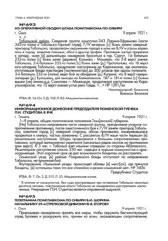 Из оперативной сводки штаба помглавкома по Сибири. г. Омск. 9 апреля 1921 г. // РГВА. Ф. 16. Оп. 3. Д. 102. Л. 82. Машинописная копия.