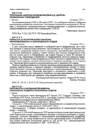 Приказ №35 по группе войск обороны Петропавловского и Кокчетавского уездов. г. Петропавловск. 16 апреля 1921 г. // РГВА. Ф. 1393. Оп. 1. Д. 95. Л. 29. Машинописный подлинник.