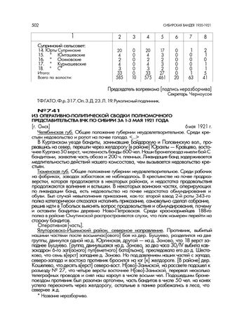 Из оперативно-политической сводки полномочного представительства ВЧК по Сибири за 1-3 мая 1921 года. [г. Омск]. 6 мая 1921 г.