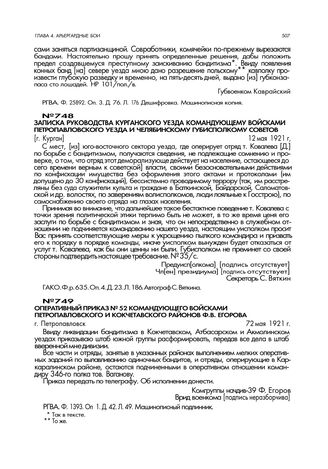 Оперативный приказ № 52 командующего войсками Петропавловского и Кокчетавского районов Ф.В. Егорова. г. Петропавловск. 12 мая 1921 г. // РГВА. Ф. 1393. Оп. 1. Д. 42. Л. 49. Машинописный подлинник.