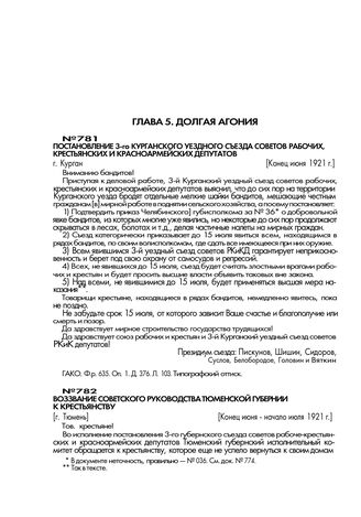 Воззвание советского руководства Тюменской губернии к крестьянству. [г. Тюмень]. Конец июня - начало июля 1921 г. // ГАТО. Ф. р. 7. Оп. 1. Д. 60. Л. 64. Типографский оттиск.