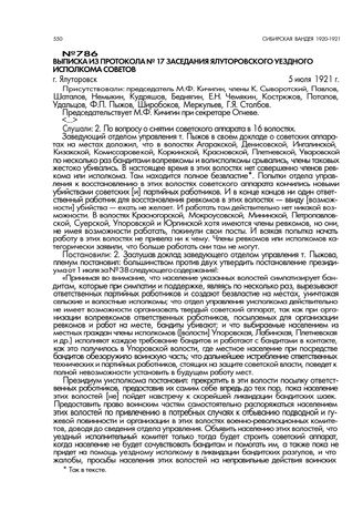 Выписка из протокола № 17 заседания Ялуторовского уездного исполкома советов. г. Ялуторовск. 5 июля 1921 г.
