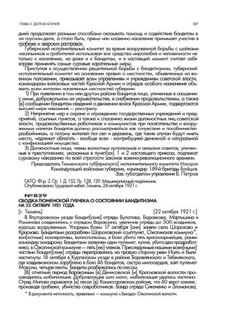 Сводка Тюменской губчека о состоянии бандитизма на 22 октября 1921 года. [г. Тюмень]. 22 октября 1921 г. // ТОЦДНИ. Ф. 1. Оп. 1. Д. 279. Л. 181. Машинописная копия.
