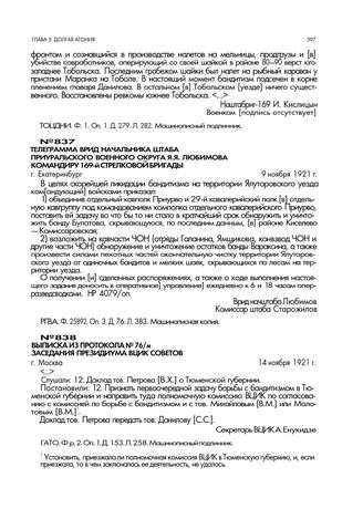 Выписка из протокола № 76/м заседания президиума ВЦИК советов. г. Москва. 14 ноября 1921 г. // ГАТО. Ф. р. 2. Оп. 1. Д. 153. Л. 258. Машинописный подлинник.