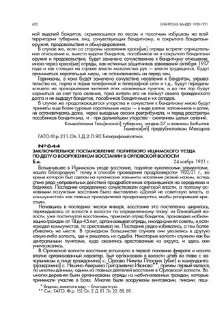Заключительное постановление политбюро Ишимского уезда по делу о вооруженном восстании в Орловской волости. 24 ноября 1921 г.