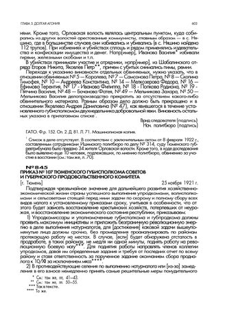 Приказ № 107 Тюменского губисполкома советов и губернского продовольственного комитета. [г. Тюмень]. 25 ноября 1921 г.