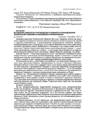 Воззвание советского руководства и военного командования Тюменской губернии к населению и мятежникам. [д. Тюмень]. Не ранее 10 декабря 1921 г. // РГВА. Ф. 25892. Оп. 3. Д. 76. Л. 431. Машинописная копия.
