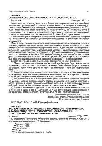 Объявление советского руководства Ялуторовского уезда. г. Ялуторовск. 10 января 1922 г.
