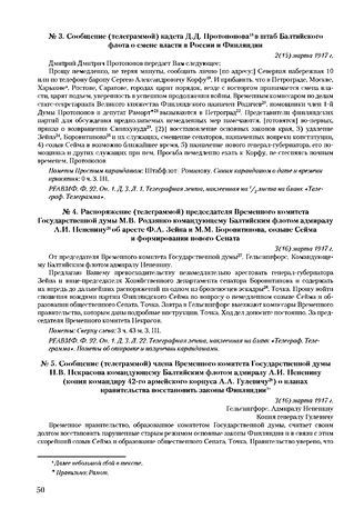 Сообщение (телеграммой) кадета Д.Д. Протопопова в штаб Балтийского флота о смене власти в России и Финляндии. 2(15) марта 1917 г.