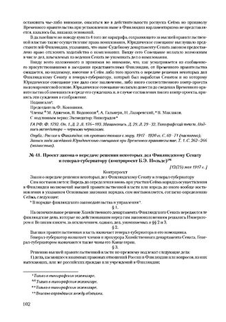 Проект закона о передаче решения некоторых дел Финляндскому Сенату и генерал-губернатору (контрпроект Б.Э. Нольде). [12(25) мая 1917 г.]