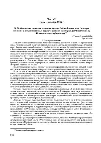Отношение Комиссии основных законов Сейма Финляндии в Большую комиссию с проектом закона о передаче решения некоторых дел Финляндскому Сенату и генерал-губернатору. 24 июня (9 июля) 1917 г. // РГАСПИ. Ф. 516. Оп. 1. Д. 56. Л. 84-88. Машинопись (3-й экз.). Л. 96-98. Машинопись (4-й экз.). Опубл.: Valtiopäivät. 1917. Asiakirjat. Ensimmäinen, Toinen ja Kolmas Osa. Helsingissä, 1917. [1917. S.V.M. Esitys № 9. S. 4-7]. Типографский текст; Россия и Финляндия: от противостояния к миру. 1917-1920 гг. С. 89-91.