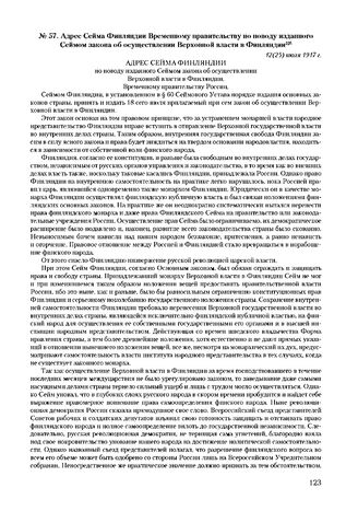 Адрес Сейма Финляндии Временному правительству по поводу изданного Сеймом Закона об осуществлении верховной власти в Финляндии. 12(25) июля 1917 г.