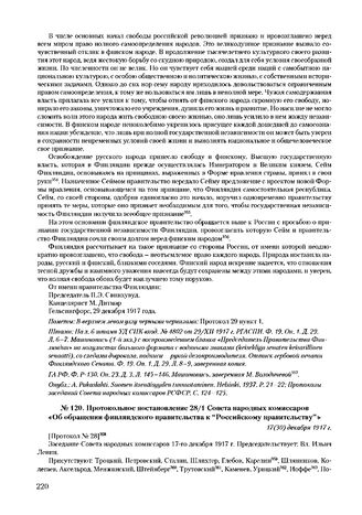 Протокольное постановление 28/1 Совета народных комиссаров «Об обращении финляндского правительства к “Российскому правительству”». 17(30) декабря 1917 г.