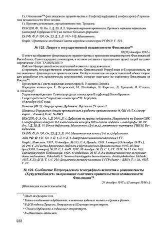 Сообщение Петроградского телеграфного агентства о реакции газеты «Хувудстадбладет» на признание советским правительством независимости Финляндии. 21 декабря 1917 г. (3 января 1918 г.) // Опубл.: АиФ. 1917.23 декабря (1918. 5 января). № 28. С. 4.