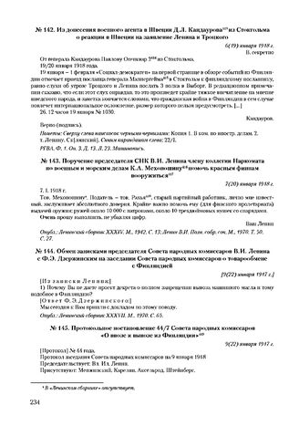 Поручение председателя СНК В.И. Ленина члену коллегии Наркомата по военным и морским делам К.Л. Мехоношину помочь красным финнам вооружиться. 7(20) января 1918 г. // Опубл.: Ленинский сборник XXXIV. М., 1942. С. 13: Ленин В.И. Полн. собр. соч. М., 1970. Т. 50. С. 27.