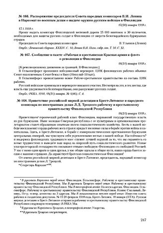 Распоряжение председателя Совета народных комиссаров В.И. Ленина в Наркомат по военным делам о выдаче оружия русским войскам в Финляндии. 17(30) января 1918 г.