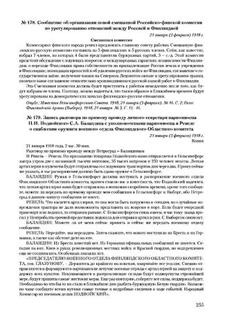 Сообщение об организации новой смешанной Российско-финской комиссии по урегулированию отношений между Россией и Финляндией. 21 января (3 февраля) 1918 г. // Опубл.: Известия Гельсингфорсского Совета, 1918, 21 января (3 февраля). № 16. С. 2; Голос Финляндской Армии (Выборг). 1918, 21 января. № 3. С. 15-16.
