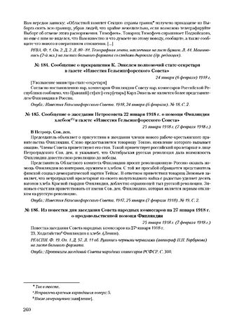 Сообщение о заседании Петросовета 22 января 1918 г. о помощи Финляндии хлебом в газете «Известия Гельсингфорсского Совета». 25 января 1918 г. (7 февраля 1918 г.) // Опубл.: Известия Гельсингфорсского Совета, 1917, 25 января (7 февраля 1918). № 19. С. 2.