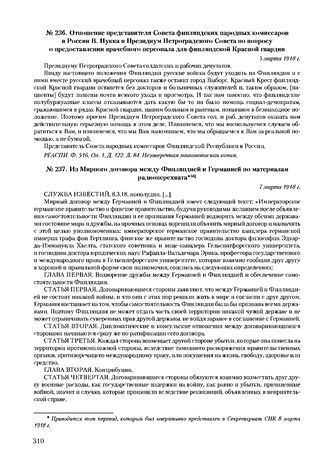 Из Мирного договора между Финляндией и Германией по материалам радиоперехвата. 7 марта 1918 г. // РГАСПИ. Ф. 5. Оп. 1. Д. 2256. Л. 5а - 5б. Машинопись.