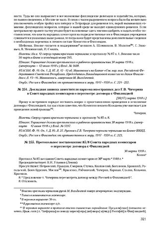 Докладная записка заместителя наркома иностранных дел Г.В. Чичерина в Совет народных комиссаров о пересмотре договора с Финляндией. [30(17) марта 1918 г.] // РГАСПИ. Ф. 19. Оп. 1. Д. 85. Л. 27. Рукопись. Опубл.: Россия и Финляндия: от противостояния к миру. 1917-1920 гг. С. 223.