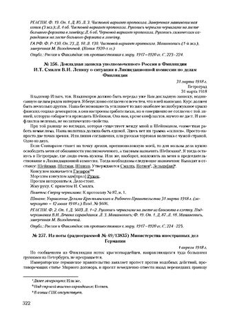 Докладная записка уполномоченного России в Финляндии И.Т. Смилги В.И. Ленину о ситуации в Ликвидационной комиссии по делам Финляндии. 31 марта 1918 г. // РГАСПИ. Ф. 2. Оп. 1. Д. 5603. Л. 1-2. Рукопись; Л. 3. Машинопись; Ф. 19. Оп. 1. Д. 87. Л. 18. Машинопись. Oпубл.: Россия и Финляндия: от противостояния к миру. 1917-1920 гг. С. 224-225.