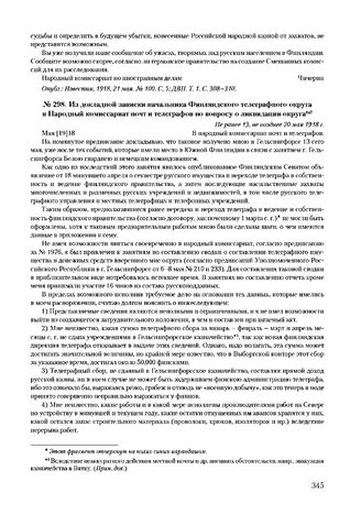 Из докладной записки начальника Финляндского телеграфного округа в Народный комиссариат почт и телеграфов по вопросу о ликвидации округа. Не ранее 13, не позднее 20 мая 1918 г.