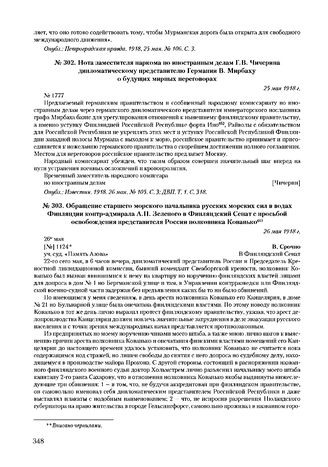 Обращение старшего морского начальника русских морских сил в водах Финляндии контр-адмирала А.П. Зеленого в Финляндский Сенат с просьбой освобождения представителя России полковника Кованько. 26 мая 1918 г. // НАФ. Фонд «Министерство иностранных дел Финляндии». Машинопись.