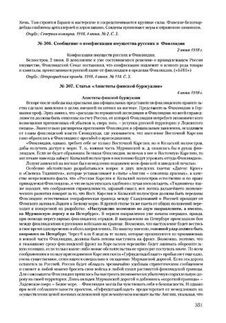Сообщение о конфискации имущества русских в Финляндии. 2 июня 1918 г. // Опубл.: Петроградская правда. 1918, 4 июня. № 114. С. 3.