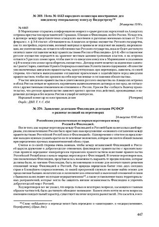 Нота № 4443 народного комиссара иностранных дел шведскому генеральному консулу Видерстрему. 24 августа 1918 г. // Опубл.: ДВП. Т. 1. С. 434.