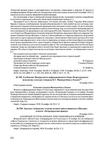 Сообщение Центрального информационного бюро Петроградского исполкома о поездке генерала К.Г. Маннергейма в Лондон. 16 ноября 1918 г.