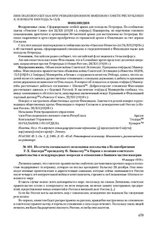 Из отчета специального помощника посольства в Великобритании У.Х. Баклера президенту В. Вильсону в Париж о позиции советского правительства в международных вопросах и отношении к бывшим частям империи. 18 января 1919 г. // Опубл.: Papers relating to the Foreign Relations of the United States. 1919. The Paris Peace Conference. 1919. V. 3. Washington, 1943. P. 643-644.