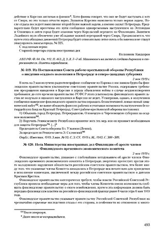 Нота Министерства иностранных дел Финляндии об аресте членов Финляндского временного экономического комитета. 2 мая 1919 г. // Опубл.: Известия. 1918. 6 мая. № 95. С. 2; Северная коммуна. 1919. 6 мая. № 98. С. 2; ДВП. Т. 2. С. 154.