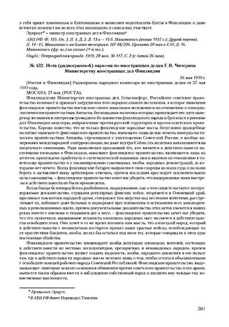 Нота (радиограммой) наркома по иностранным делам Г.В. Чичерина Министерству иностранных дел Финляндии. 26 мая 1919 г.