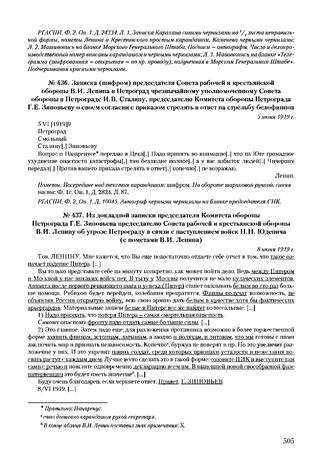 Из докладной записки председателя Комитета обороны Петрограда Г.Е. Зиновьева председателю Совета рабочей и крестьянской обороны В. И. Ленину об угрозе Петрограду в связи с наступлением войск H.Н. Юденича (с пометами В.И. Ленина). 8 июня 1919 г.