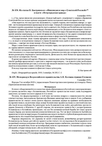 Меморандум Всероссийского правительства А.В. Колчака странам Согласия. 7 октября 1919 г. // АВП РФ. Ф. 04. Оп. 11. П. 463. Д. 6. Л. 18. Машинопись. ГА РФ. Ф. Р-200. Оп. 1. Д. 118. Л. 102. Машинописная копия.