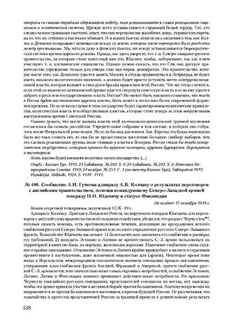 Сообщение А.И. Гучкова адмиралу А.В. Колчаку о результатах переговоров с английским правительством, помощи командующему Северо-Западной армией генералу Н.Н. Юденичу и статусе Финляндии. Не позднее 17 октября 1919 г.