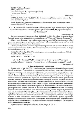 Сообщение РОСТА о предполагаемой конференции Финляндии и прибалтийских государств в Гельсингфорсе об общих переговорах с Россией. 31 декабря 1919 г. // Опубл.: Известия Петроградскою Совета. 1920, 6 января. № 4. С. 2.