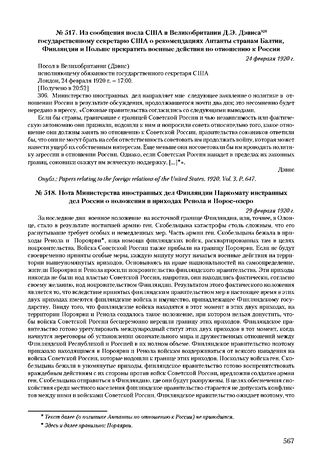 Нота Министерства иностранных дел Финляндии Наркомату иностранных дел России о положении в приходах Ренола и Порос-озеро. 29 февраля 1920 г. // Опубл.: ДВП. Т. 2. С. 394-395.