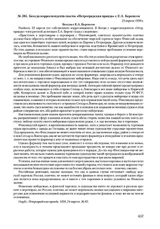 Беседа корреспондента газеты «Петроградская правда» с Е.А. Беренсом. 23 апреля 1920 г.
