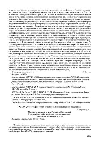 Стенографический отчет восьмого пленарного заседания. 7 августа 1920 г. // РГАСПИ. Ф. 5. Оп. 1. Д. 2009. Л. 63-68. Машинопись. Опубл.: Suomen ja Venäjän välisten Tartossa pidettyjen rauhanneuvottelujen pöytäkirjat: kesäk. 12 p:stä lokak. 14 pm 1920. Helsinki, 1923. S. 77-82.