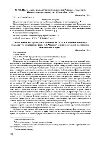 Из обзора внешнеполитического положения России, составленного Наркоматом иностранных дел 13 сентября 1920 г. // АВП РФ. Ф. 04. Оп. 41. П. 250. Д 53386. Л. 56-57.