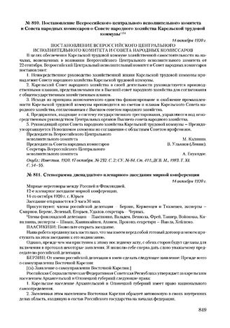 Международные отношения -- Финляндия -- Тартуский мирный договор между Россией и Финляндией, март-декабрь 1920 г.