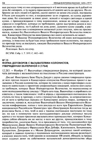 Форма договоров с вызывателями колонистов, утвержденная Екатериной II (1764). 12.283. — Ноября 17. Высочайше утвержденная форма, по которой заключать договоры с вызывателями на поселение в Россию иностранцев