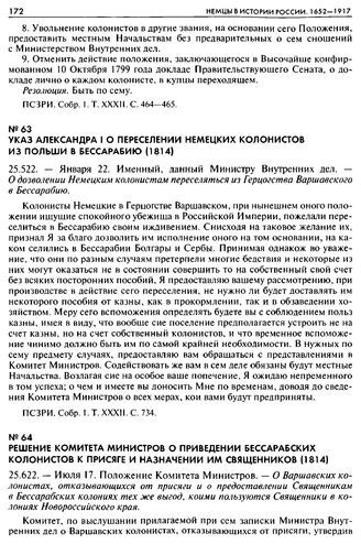 Указ Александра I о переселении Немецких колонистов из Польши в Бессарабию (1814). 25.522. — Января 22. Именный, данный Министру Внутренних дел. — О дозволении Немецким колонистам переселяться из Герцогства Варшавского в Бессарабию