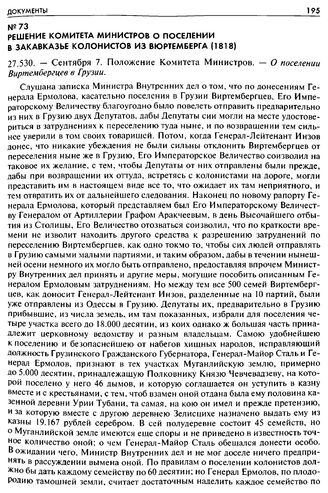Решение Комитета Министров о поселении в Закавказье колонистов из Вюртемберга (1818). 27.530. — Сентября 7. Положение Комитета Министров. — О поселении Виртембергцев в Грузии