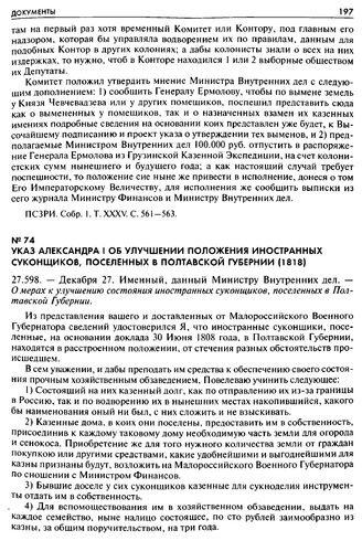 Указ Александра I об улучшении положения иностранных суконщиков, поселенных в Полтавской губернии (1818). 27.598. — Декабря 27. Именный, данный Министру Внутренних дел. — О мерах к улучшению состояния иностранных суконщиков, поселенных в Полтавско...