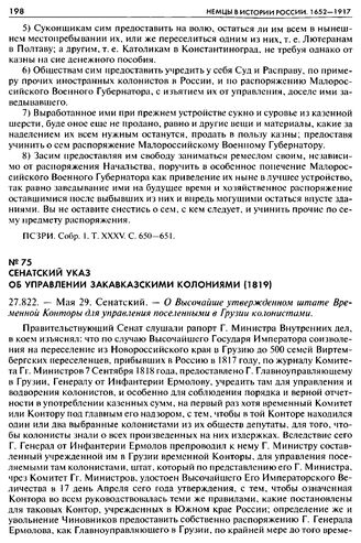 Сенатский указ об управлении Закавказскими колониями (1819). 27.822. — Мая 29. Сенатский. — О Высочайше утвержденном штате Временной Конторы для управления поселенными в Грузии колонистами