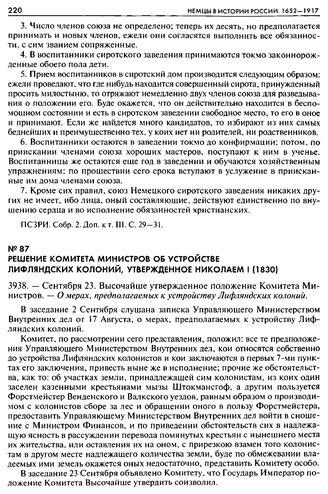Решение Комитета Министров об устройстве Лифляндских колоний, утвержденное Николаем I (1830). 3938. — Сентября 23. Высочайше утвержденное положение Комитета Министров. — О мерах, предполагаемых к устройству Лифляндских колонии // ПСЗРИ. Собр. 2. Т. V. Отд. 2. С. 52-57.
